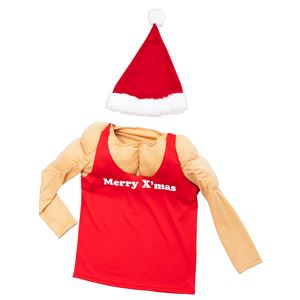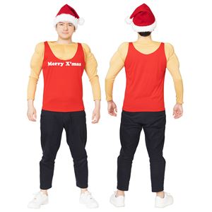 脱がなくても面白いコスチューム!着るだけで筋肉もりもりのマッチョなサンタになれます。タンクトップと筋肉は一体型で着脱も簡単。生地はストレッチ生地なのでよくのびます。胸のMerryX'masのロゴがポイントです!