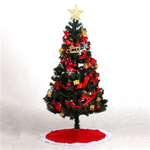 - クリスマスツリー 【高さ150cm レッド】 ポリ塩化ビニル LED オーナメント付き 『セットツリー』 〔リビング 店舗 什器 備品〕